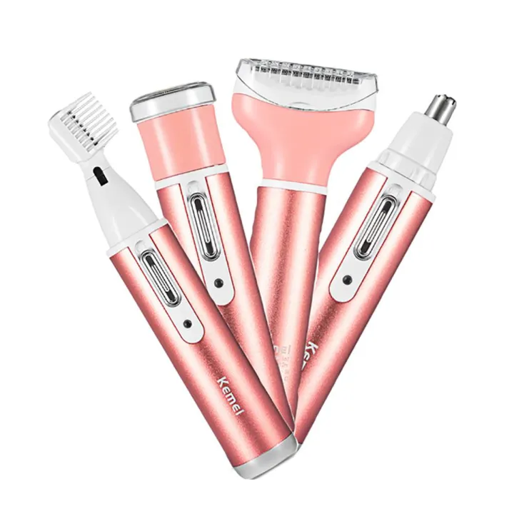 Kemei 4 in 1 Multi-functional Rechargeable Body Shaver Beard Eyebrow Nose Trimmer for Women KM-6637