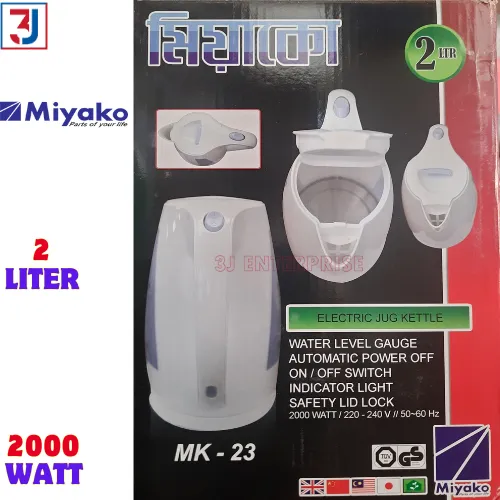 Miyako Electric Kettle MK-20 plastic body Cordless 2000 Watt 2 Liter