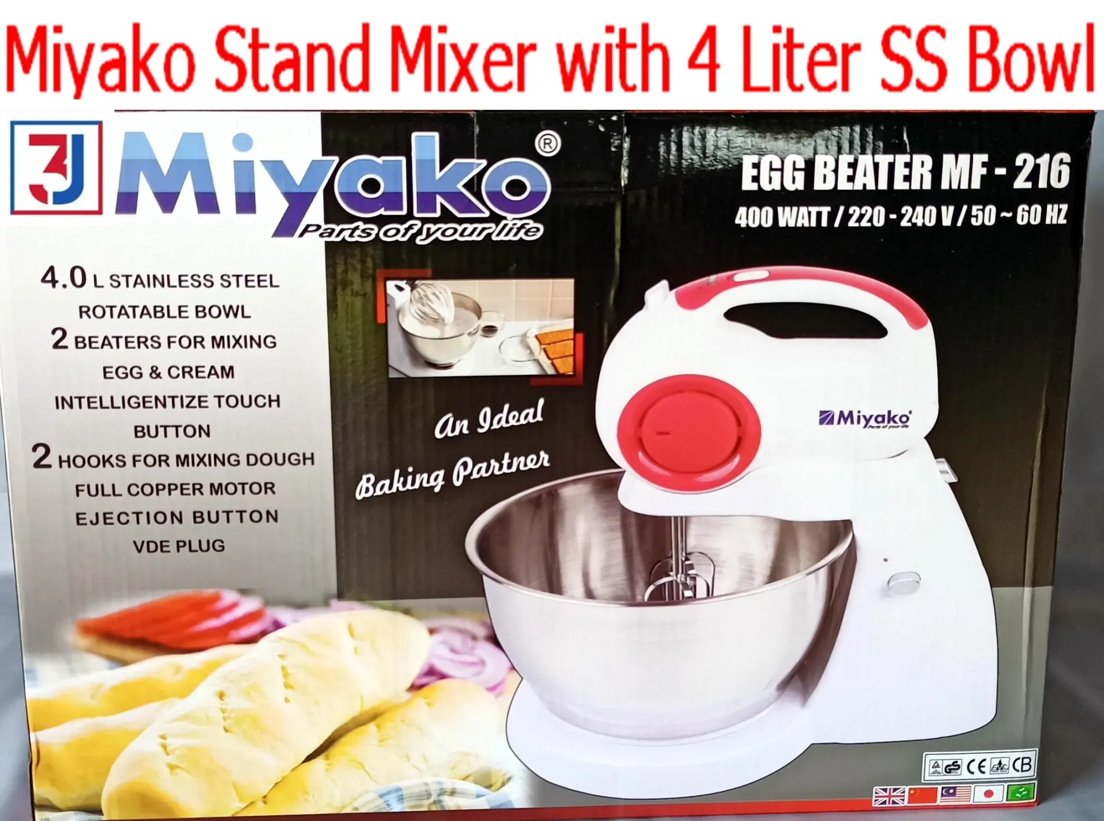 Product details of Miyako EGG Beater & Stand Mixer 400 Watt with 4 Liter SS Bowl MF-216