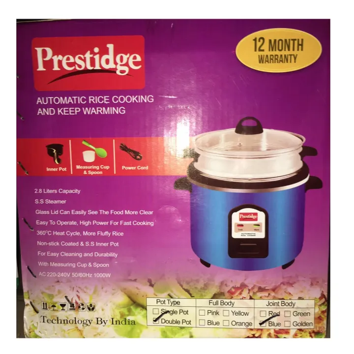 Be the first to review “Prestidge Automatic Rice Cooker and Keep Warming Double Pot (SS Pot+non-stck pot) 2.8 Ltr.” Cancel reply